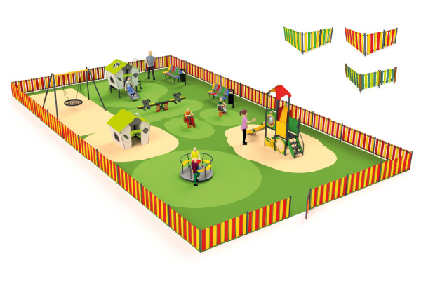 Estruturas em metal e em madeira e cercas modulares fabricadas por encomenda. Ideais para a criação de áreas de recreação e espaços infantis organizados e protegidos, garantindo adaptabilidade a diferentes necessidades de espaço.